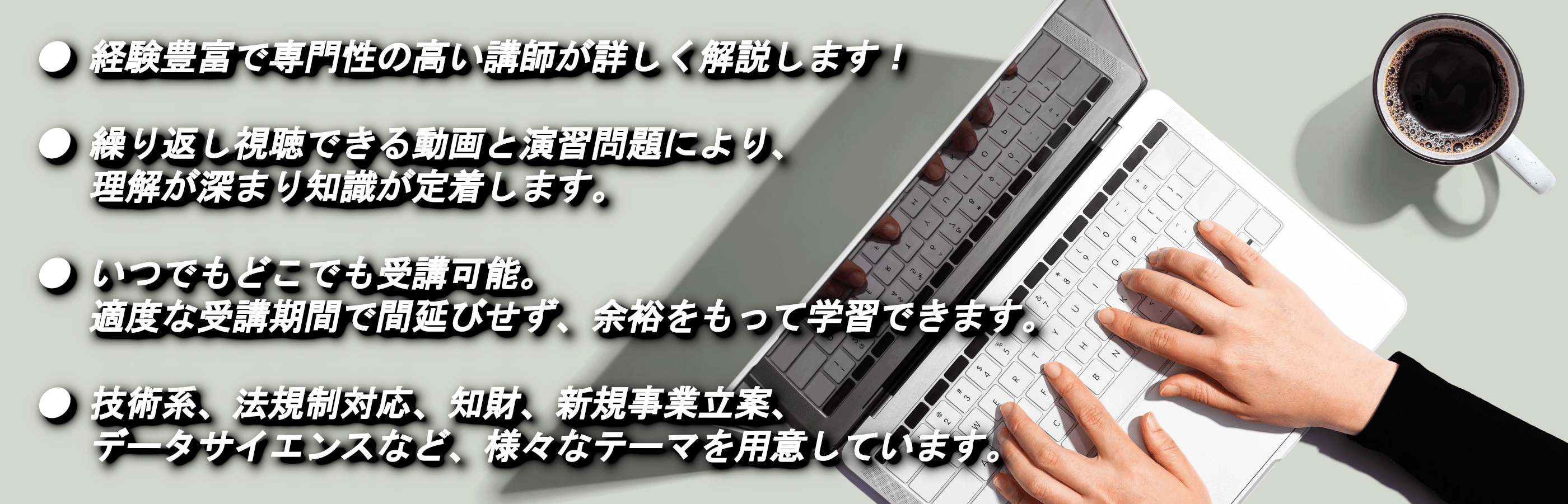 | 『自社が勝つため』『事業の優位性を築くため』のパテントマップ作成方法と知財戦略の策定法を動画e-ラーニングでじっくりと学べます! | ||